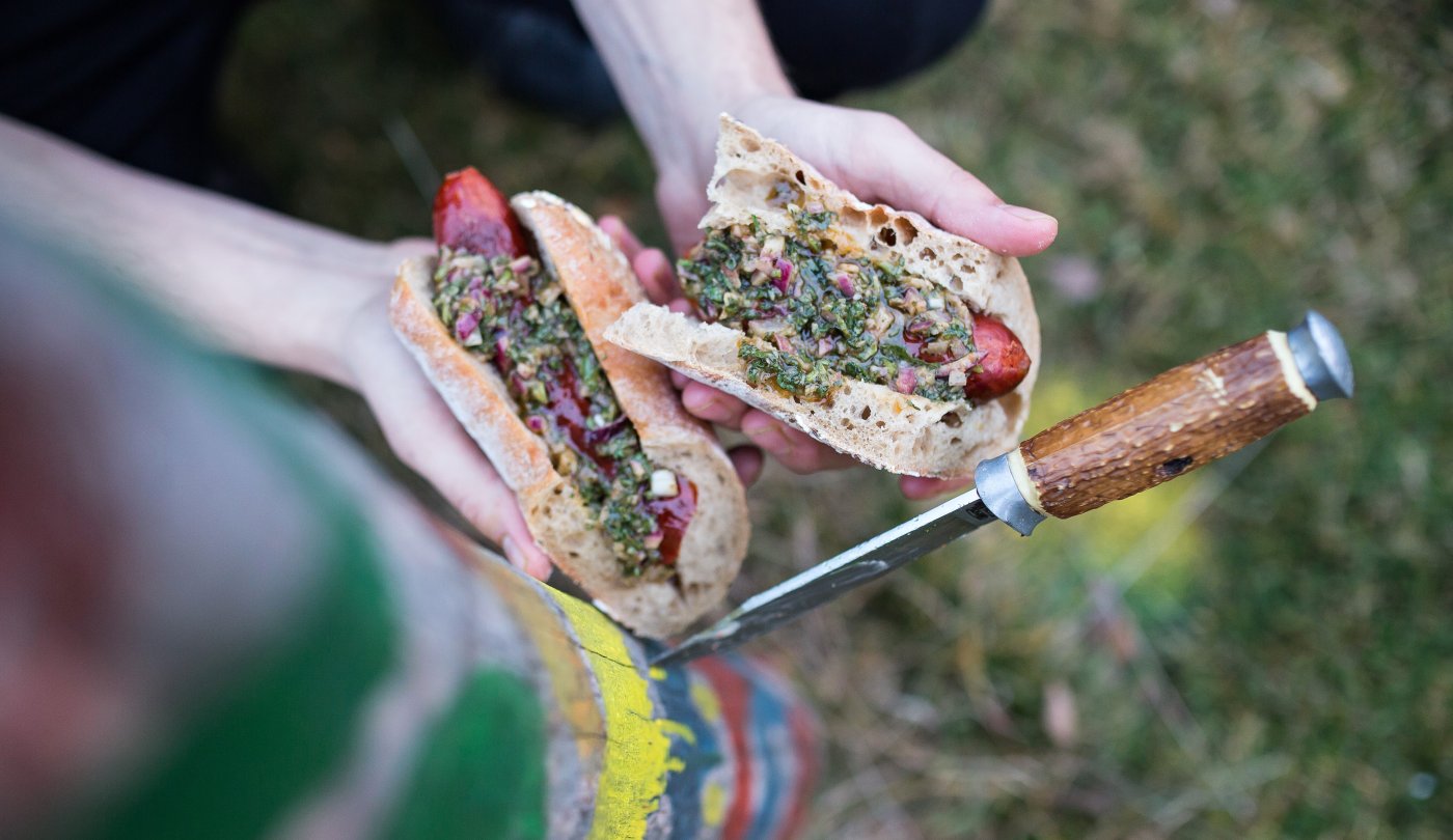 Κρέατα & Πουλερικά Choripan — Μπαγκέτα με πικάντικο λουκάνικο με σάλτσα chimichurri Posted by user_bbq On 9 Ιουλίου, 2018 Δεν επιτρέπεται σχολιασμός στο Choripan — Μπαγκέτα με πικάντικο λουκάνικο με σάλτσα chimichurri Υλικά για 5 μερίδες 5 πικάντικα λουκάνικα κατάλληλα για γκριλ (ιδανικά chorizo)5 μικρές μπαγκέτες τύπου σάντουιτς Για τη σαλάτα 1 κ. γλυκού (5 γρ.) ρίγανη1 κ. γλυκού (5 γρ.) κoλίανδρο1 μικρό κόκκινο κρεμμύδι ψιλοκομμένο15 γρ. μαϊντανό ψιλοκομμένο1 πρέζα κόκκινο καυτερό πιπέρι1 κ. γλυκού μουστάρδα Dijon1 κ. γλυκού μέλι3 σκελίδες σκόρδο60 ml ελαιόλαδο3 κ. της σούπας ξύδι από κρασίαλάτι και μαύρο πιπέρι Εκτέλεση Για τη σάλτσα, βάζουμε όλα τα υλικά εκτός από το κρεμμύδι και το μαϊντανό σε ένα πολυμιξεράκι και χτυπάμε καλά.Προσθέτουμε το κρεμμύδι και το μαϊντανό, ανακατεύουμε κι αφήνουμε τη σάλτσα να ξεκουραστεί για τουλάχιστον μία ώρα.Ψήνουμε τα λουκάνικα στην ψησταριά ώσπου να ροδίσουν και να γίνουν κριτσανιστάΤα τοποθετούμε μέσα στις μπαγκέτες που έχουμε κόψει κατά μήκος, και περιχύνουμε με λίγη από τη σάλτσα chimichurri.